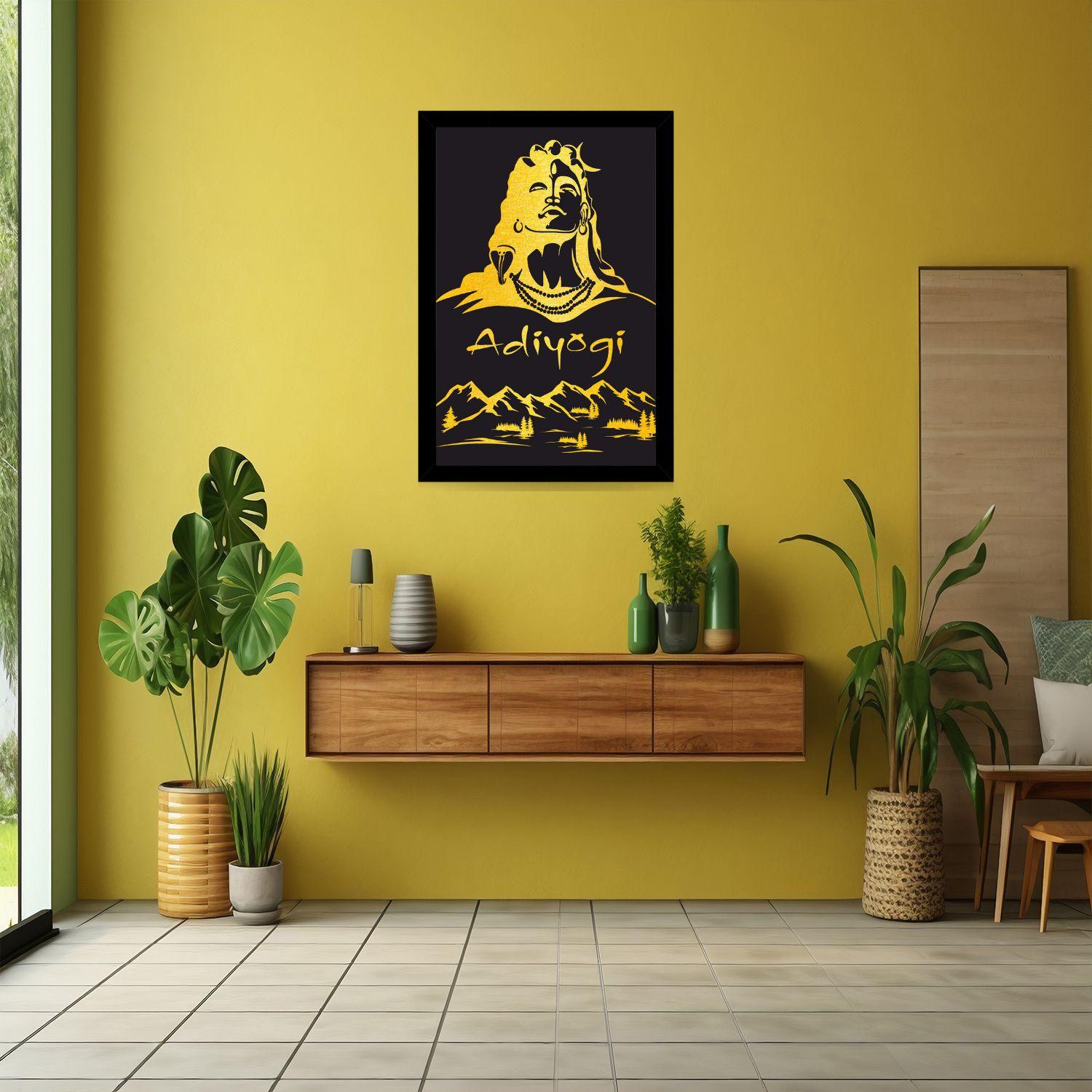 Adiyogi Golden Painting with Frame | Modern Wall Hanging for Living Room & Office